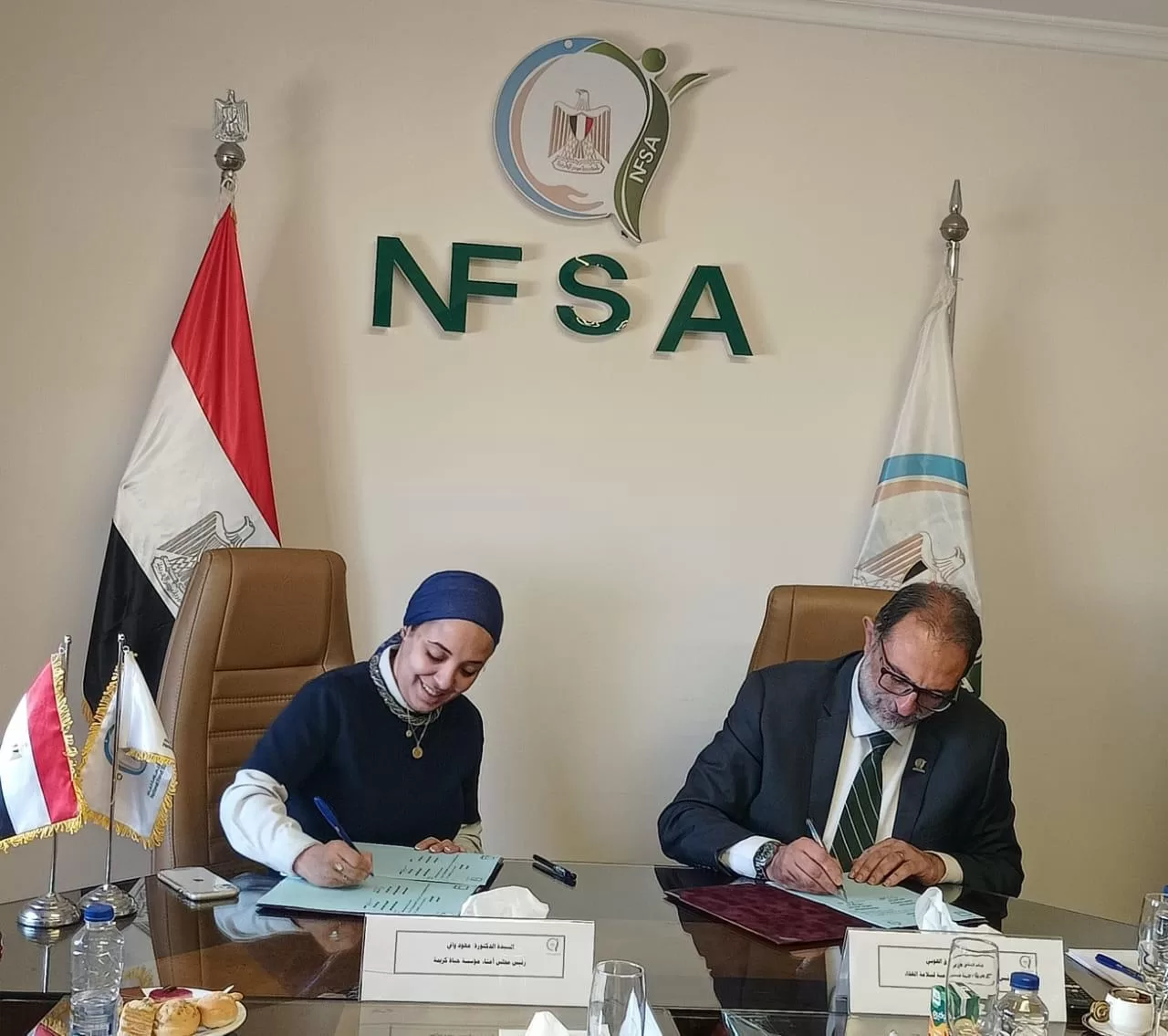 Chairman of the National Food Safety Authority (NFSA), Dr Tareq el-Houby, signed a protocol, and Dr Ohoud Wafi, Chairman of the Board of Trustees of Haya Karima Foundation, to strengthen co-operation between the governmental sector and civil society bodies.