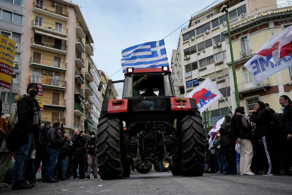 Meanwhile, hundreds of protesting farmers blocked traffi c in central Athens to demand the government grant them additional concessions to cope with high energy costs. Holding up vegetables and black flags, the protesters, some on tractors, gathered outside the Farm Ministry and planned to head to parliament in the center of the capital.