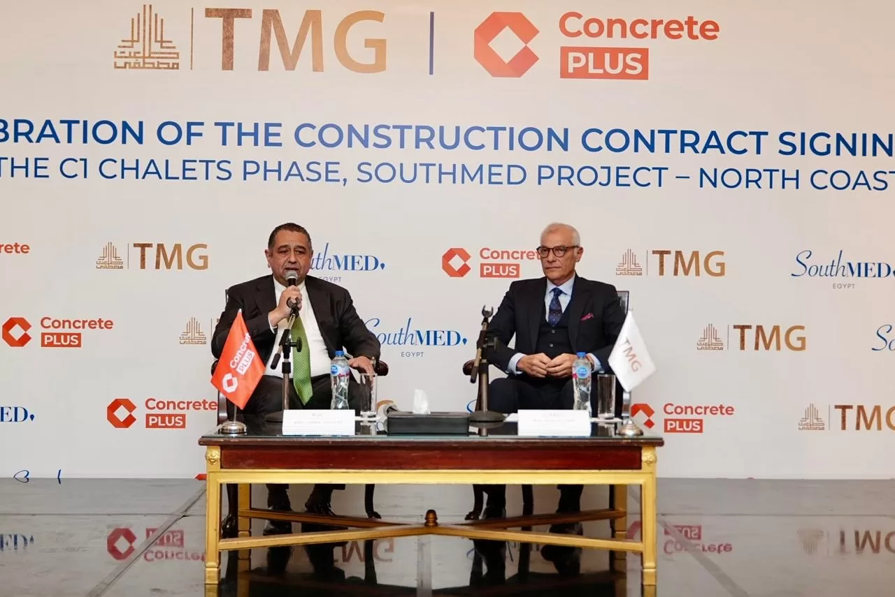 Talaat Moustafa Group (TMG) has officially announced the signing of a major construction contract with Concrete Plus for Engineering and Construction to execute works at the SouthMED project on the Northwestern Coast. The total investment for these works is approximately EGP 10 billion (equivalent to roughly $200 million).