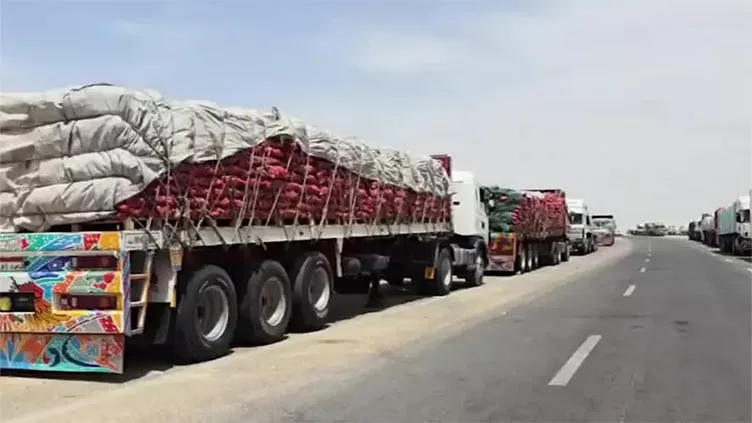 The Egyptian aid trucks lined up at the Rafah border crossing before making their way into the war-torn Gaza.