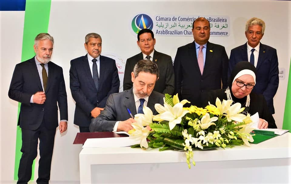 The MoU was signed by Minister of Trade and Industry Nevine Gamea and ABCC President Osmar Chohfi in the presence of Brazilian Vice President Hamilton Mourão, Brazilian Ambassador in Cairo Antonio Patriota, Secretary-General of the Union of Arab Chambers Khaled Hanafy and President of the Federation of Egyptian Chambers of Commerce (FEDCOC) Ibrahim al-Araby.