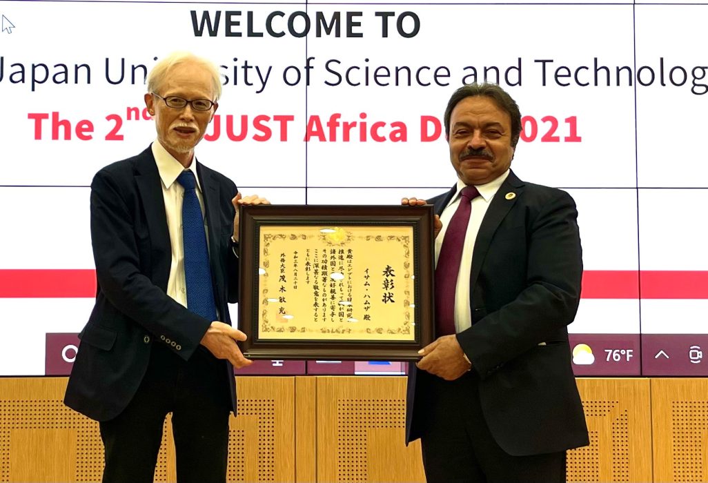 Ambassador of Japan to Egypt Noke Masaki on Tuesday awarded the Japanese Foreign Minister’s Commendation to Professor Isam Hamza, the Dean of Liberal Arts and Culture Centre at the Egypt-Japan University of Science and Technology (E-JUST).