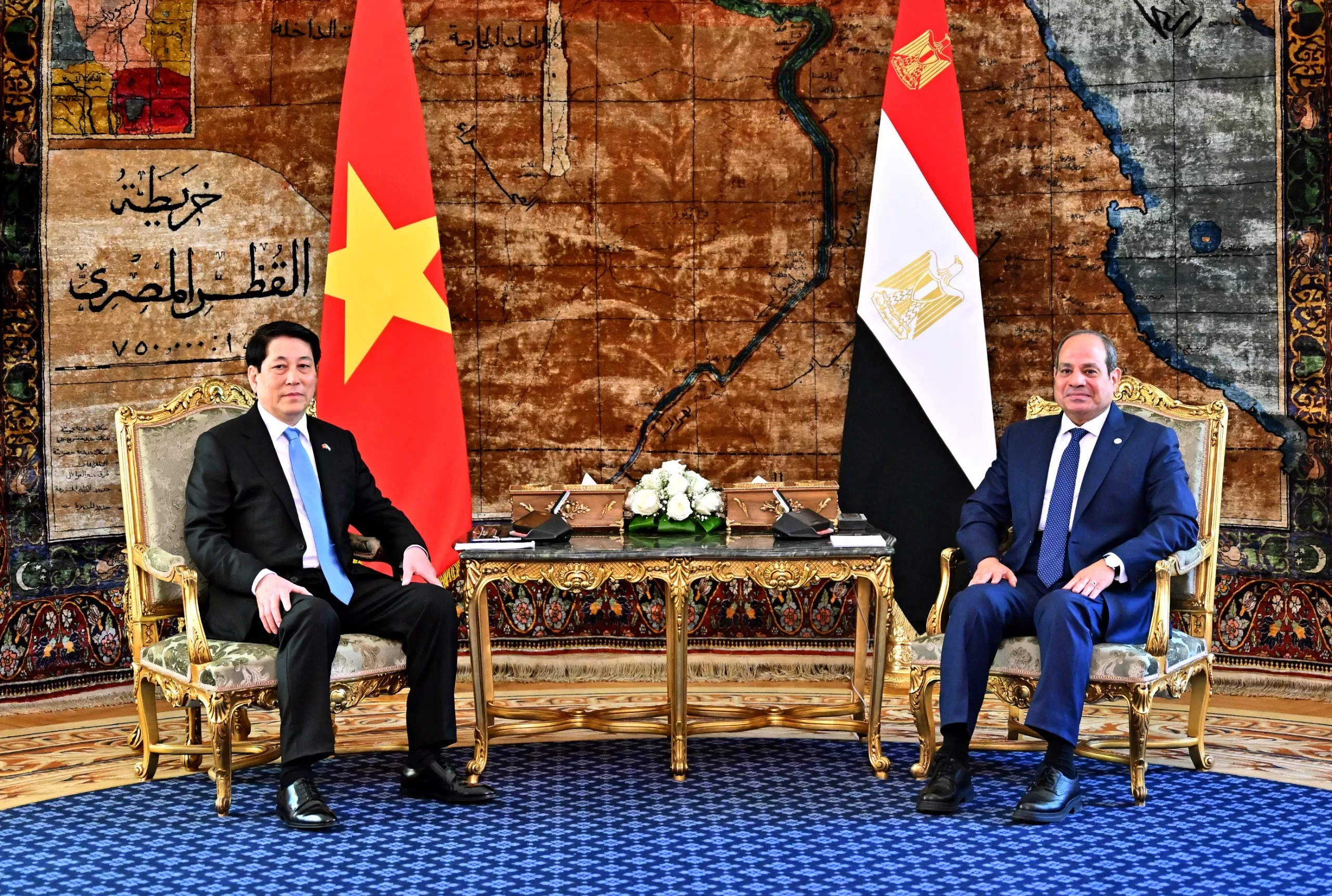 President Sisi received on Tuesday President of the Socialist Republic of Vietnam, Luong Cuong, at Al-Ittihadiya Palace.