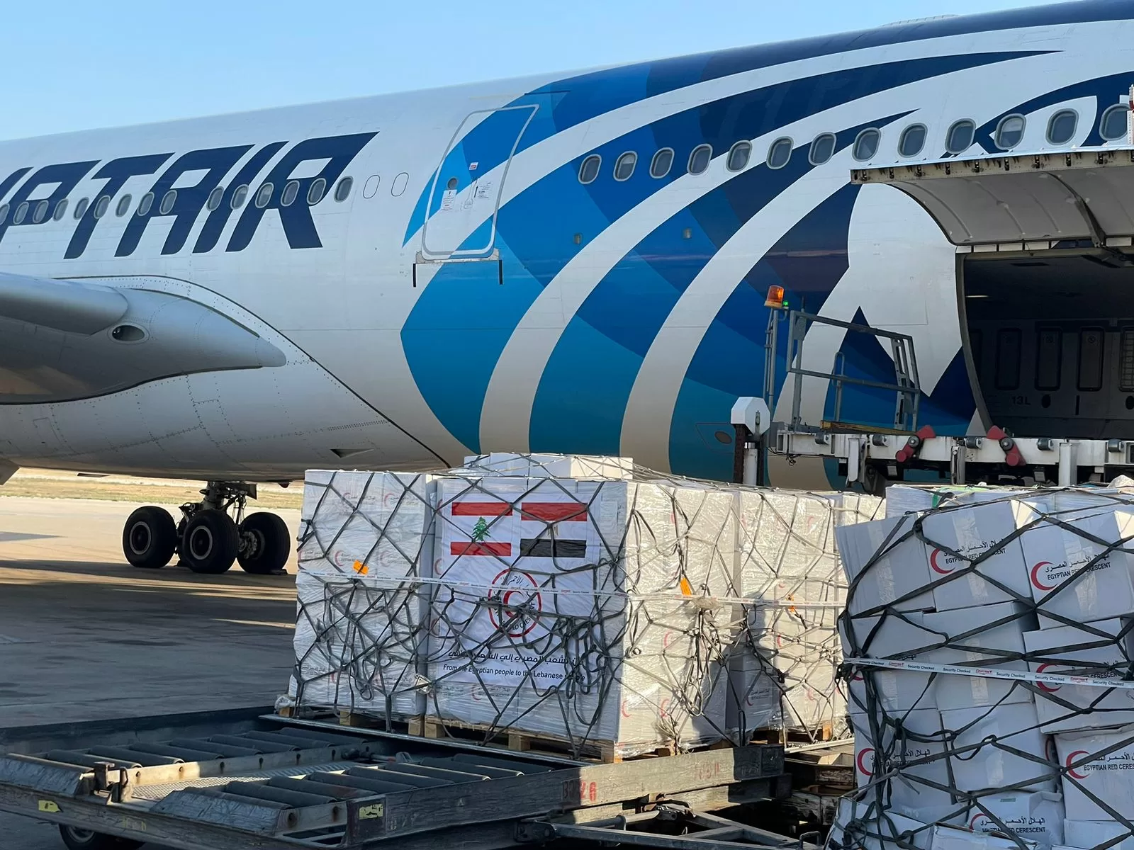 An exceptional plane left Egypt on Wednesday to Lebanon carrying 22 tons of humanitarian aid from the Egyptian Red Crescent.