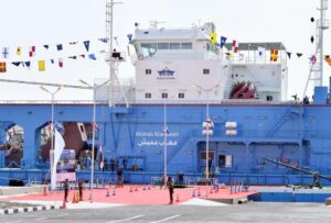 President Sisi witnessed raising the Egyptian flag on Mohab Mamish Dredger named after the former Suez Canal chairman, who was attending the ceremony. Mohab Mamish Dredger can dig in a depth of 35 metres, as indicated by a Suez Canal official while briefing the president.