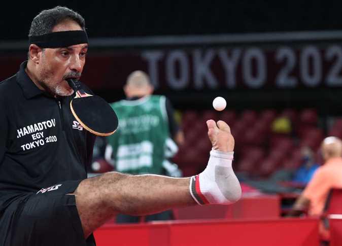“The Egyptian (Hamadtou) plays without arms and holds the bat in his mouth. He fires winning return shots with real power too,” the Paralympic Games tweeted, with video of Hamadtou during a game.