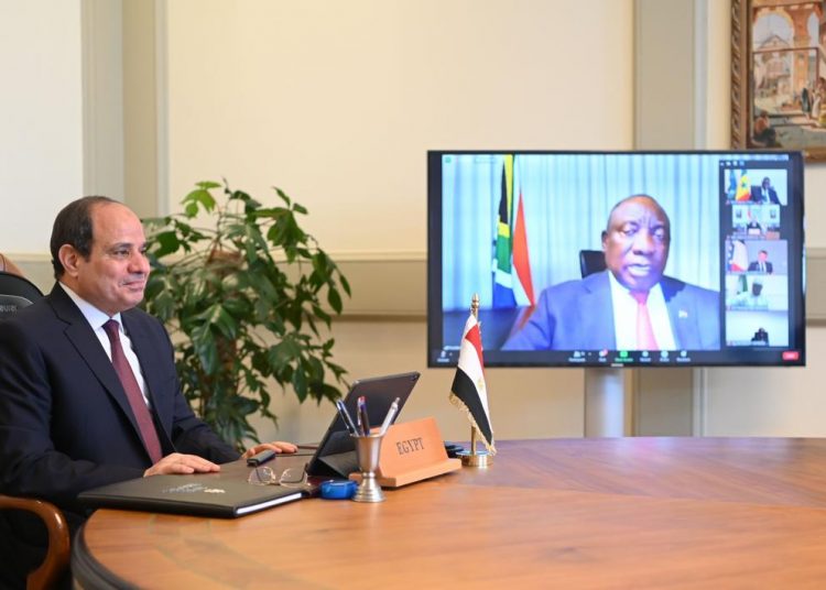 President Abdel Fattah El-Sisi participated via video conference Wednesday evening in the summit of the Bureau of the Assembly of the African Union. French President Emmanuel Macron, African Presidents; the members of the Bureau of the Assembly of the African Union, President of the Democratic Republic of the Congo and Chairperson of the African Union Félix Tshisekedi – who was at their head- and African Union Commission Chairperson Moussa Faki Mahamat participated in the summit.