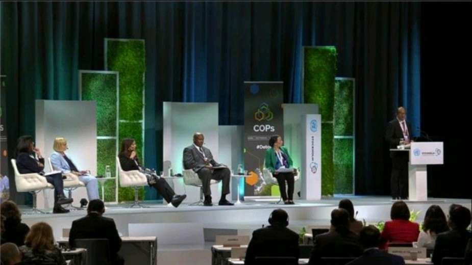 The session focused on available opportunities to handle the three environmental crises including pollution, climate change and maintaining biological diversity.