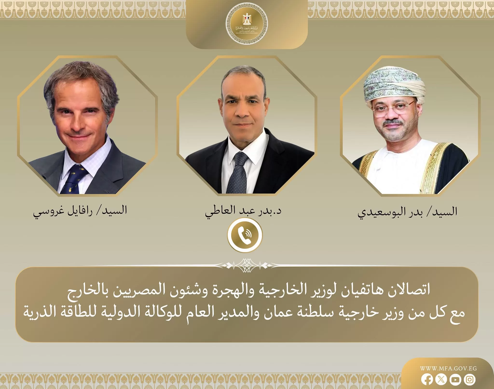 Minister of Foreign Affairs, Emigration and Expatriates Affairs Badr Abdelatty had a telephone call with Omani Foreign Minister Badr al Busaidi, within the framework of ongoing consultation and coordination between the two nations.
