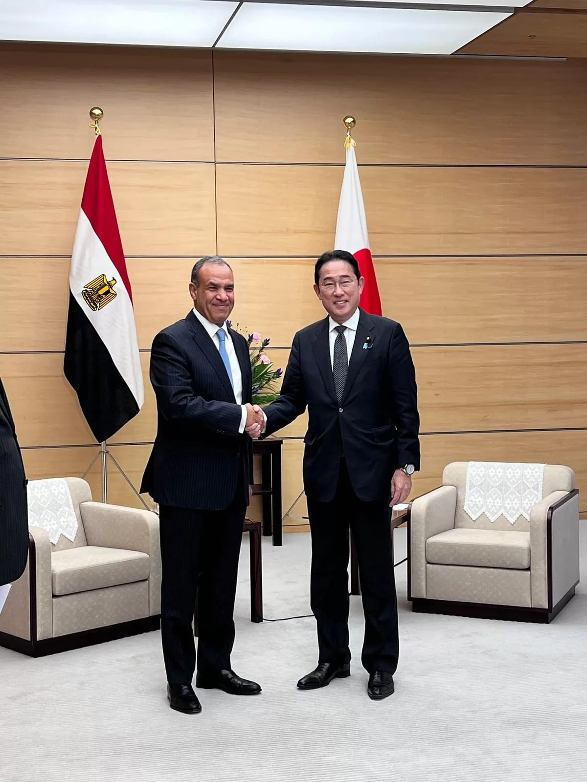 Egypt’s Minister of Foreign Affairs, Emigration and Egyptian Expatriates, Badr Abdelaty met with Japan’s Prime Minister Fumio Kishida in Tokyo yesterday during his visit to participate in the ministerial meeting of the Tokyo International Conference on African Development (TICAD).