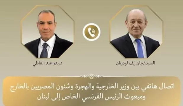 During a phone call with French President Emmanuel Macron’s special envoy to Lebanon, Jean-Yves Le Drian, Abdelatty highlighted the urgency of empowering Lebanon’s national institutions and ensuring a unified Lebanese-led solution.