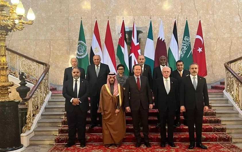 The foreign ministers of the ministerial committee formed by the Arab-Islamic summit convened in London on Wednesday with UK Foreign Secretary David Cameron.