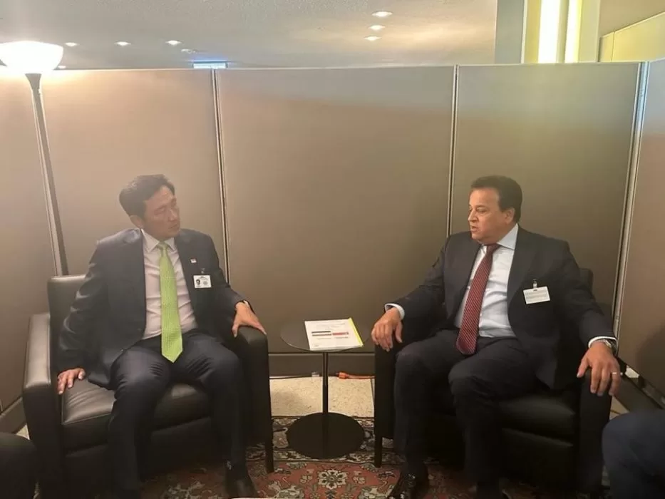 Egypt’s Minister of Health and Population Khaled Abdel Ghaffar discussed with Minister for Health in Singapore Ong Ye Kung ways of supporting joint cooperation between the two countries in training doctors in different medical specialties and nurses along with education and family health.