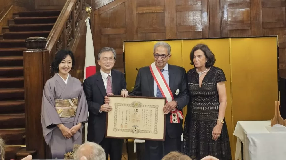 On behalf of the Japanese Government, Ambassador Oka Hiroshi awarded former minister of foreign affairs Amr Moussa the decoration of the Grand Cordon of the Order of the Rising Sun for his outstanding contributions to strengthening relations between Japan and Egypt as well as the Arab countries.