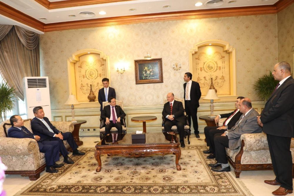 After the signing of the agreement, the governor of Cairo gave the Vietnamese Deputy Prime Minister and the Deputy Governor of Hanoi the shield of the Cairo Governorate.
