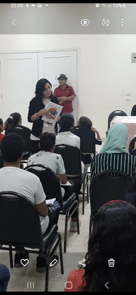 The workshop aims at enabling children to solve the problems they are going through and reveal their hidden energies through spontaneous face-to-face dialogue . “ I was impressed by the children’s interaction and eagerness to hear more and more,” the author told The Egyptian Mail.