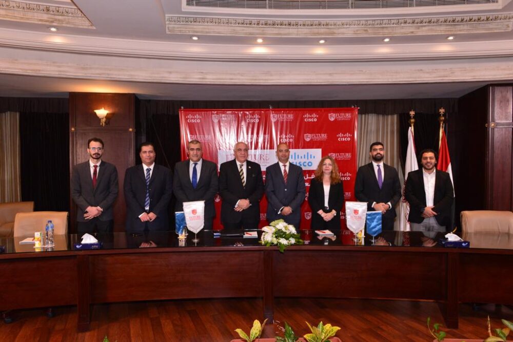 President of Future University Obada Sarhan and Ayman el-Gohary, CEO of Cisco for Egypt, North Africa and the Arab Levant, signed the agreement.