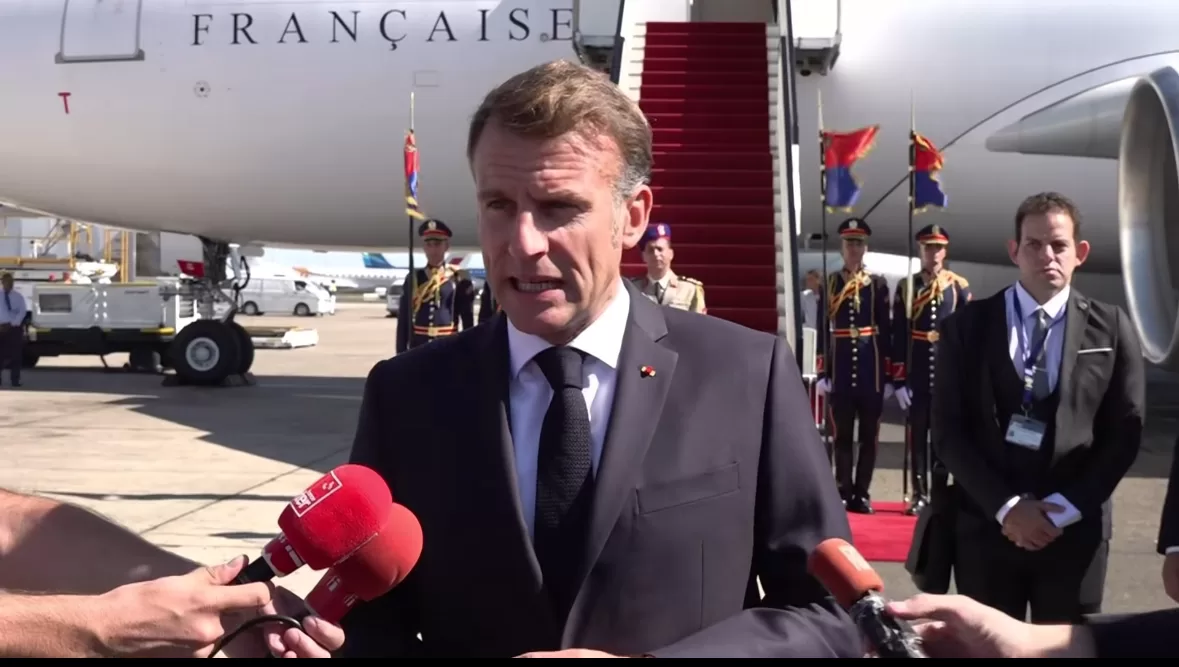 French President Emmanuel Macron voiced gratitude to negotiators from Egypt, the US, Qatar and Türkiye in remarks made upon his arrival in the Red Sea Resort City of Sharm El-Sheikh to participate in the Sharm El-Sheikh Summit for Peace.