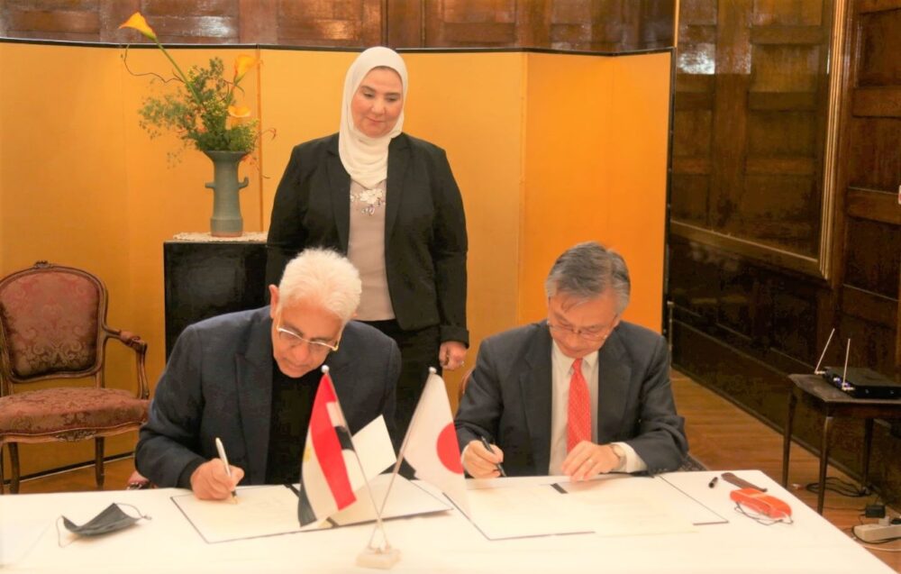 Ambassador of Japan Oka Hiroshi and Chairman of Takatof Association for Development Hossam Badrawi signed a grant contract for Japanese Grant Assistance for Grass-Roots Human Security Projects.