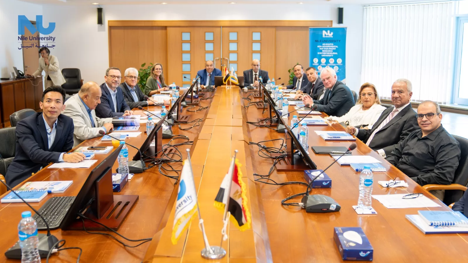 On September 6th, the board held its inaugural hybrid meeting, hosted at Nile University’s campus in Giza and connected online. The meeting saw participation from four members of the university’s Board of Trustees and three senior university officials. Discussions focused on the university’s strategic goals, ongoing projects, and provided valuable recommendations on global partnerships, quality assurance, and enhancing the university’s international ranking and positioning.