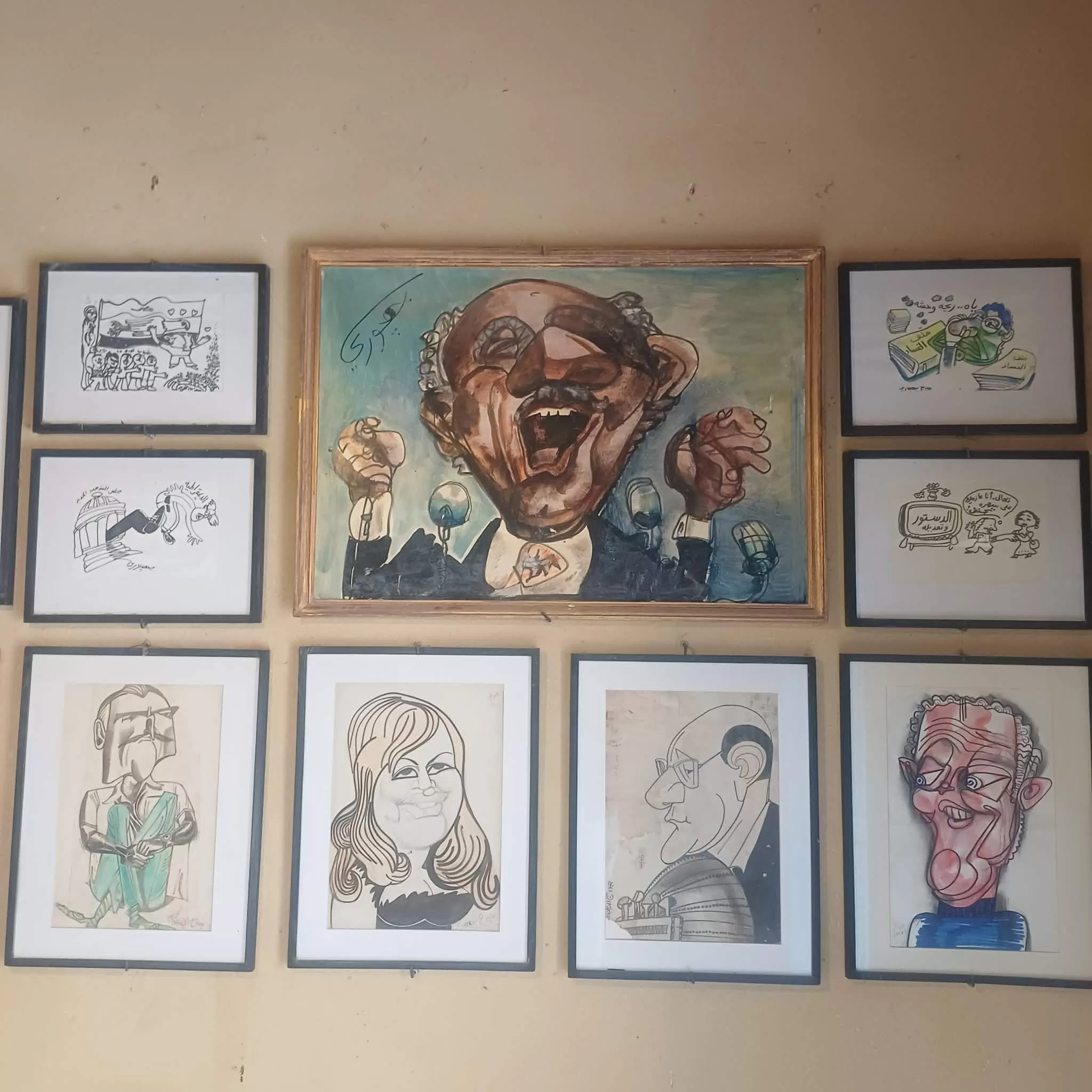 Each wall reflects a distinct historical moment, turning satire into a visual archive of collective memory. Rare original pieces by Rakha, often referred to as the father of Egyptian caricature, form one of the most valuable sections of the collection.