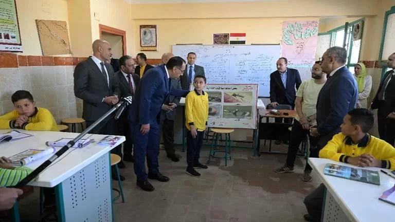 Madbouli started the tour by inspecting Amgad Primary School in Kirdasha, then he visited El Nada School for Primary Education.