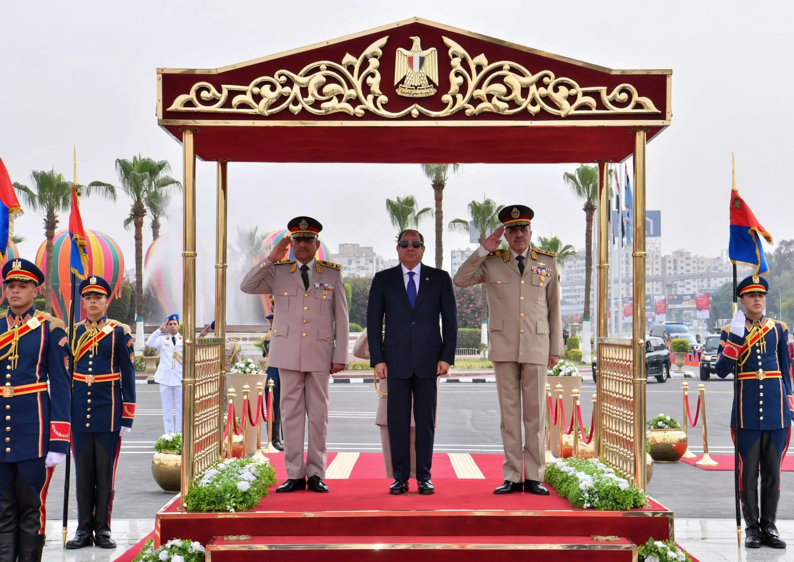 He added that President Sisi was received by Commander-in-Chief of the Armed Forces and Minister of Defence and Military Production, Lieutenant General Abdul-Meguid Saqr, Chief of Staff of the Armed Forces, Lieutenant General Ahmed Khalifa, and other senior officials.