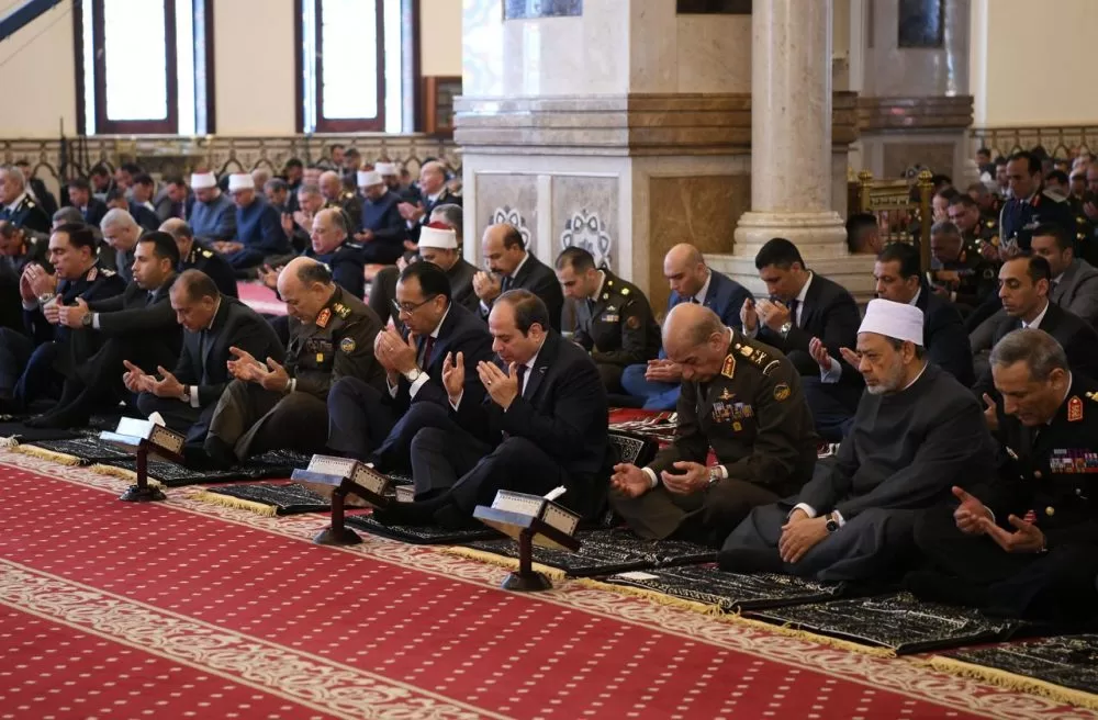 Prime Minister Moustafa Madbouli, Minister of Defense and Military Production General Mohamed Zaki, Chief of Staff of the Armed Forces Lieutenant General Osama Askar, Minister of Interior Mahmoud Tawfik as well as Grand Imam of Al-Azhar Ahmed el-Tayyeb and Grand Mufti of Egypt Shawki Allam, and Minister of Awqaf Mohamed Mokhtar Gomaa also attended the prayers.