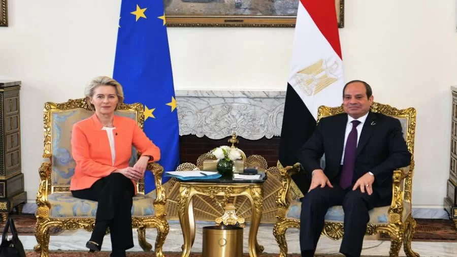 Egypt totally rejects the forced displacement of Palestinians and will not allow it to happen, affirmed President Sisi during a meeting with President of the European Commission Ursula von der Leyen on the sidelines of the Egyptian-European Summit.