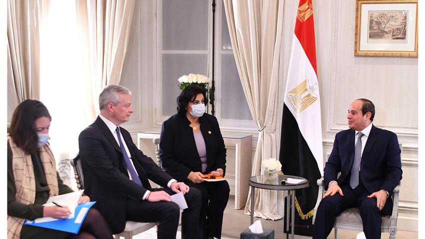 PARIS – Egyptian President Abdel Fattah El Sisi met on Friday here with French Minister of Economy and Finance Bruno Le Maire, said Egyptian Presidential Spokesman Ambassador Bassam Radi.
