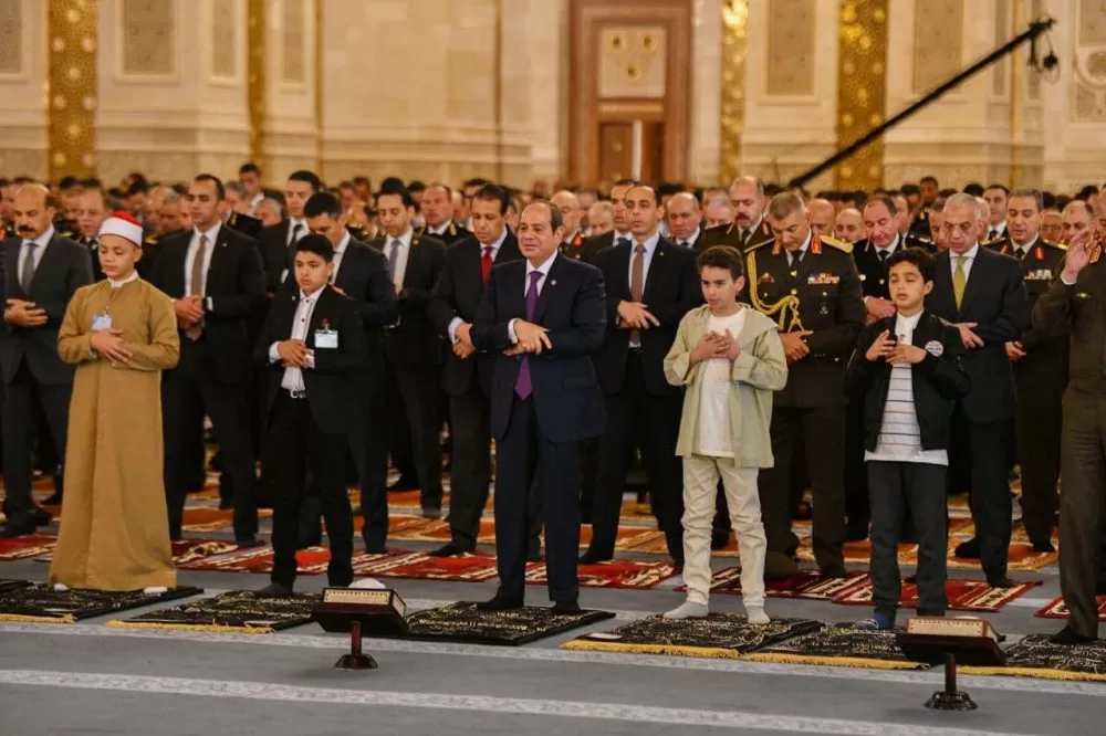 Egypt’s President Abdel Fattah El Sisi performed Eid al-Fitr prayer on Wednesday morning at the Grand Mosque of Egypt in the New Administrative Capital.