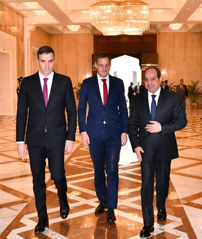CAIRO – President Abdel Fattah El Sisi received on Friday at El-Ittihadiya Palace the prime ministers of Spain, which held the current EU Presidency, and Belgium that will assume the EU Presidency for 2024 for trilateral talks on the latest developments in the Gaza Strip.