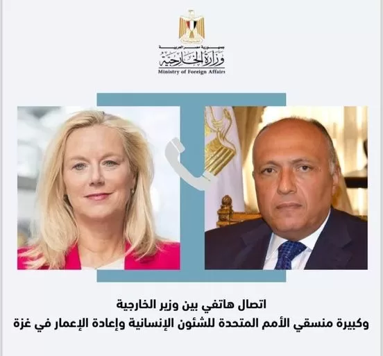 This came during a phone call received by the Foreign Minister from the UN humanitarian coordinator in Gaza, as part of the ongoing consultation with Egypt before Sigrid Kaag presents her monthly briefing to the Security Council, according to Ambassador Ahmed Abu Zeid, the Official Spokesman of the Ministry of Foreign Affairs.