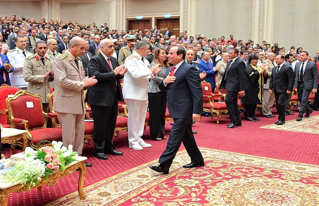 Attending the ceremony are also Grand Imam of Al Azhar Dr Ahmed el Tayyeb, Speaker of the House of Representatives Hanafy Gebaly, Speaker of the Senate Abdel Wahab Abdel Razeq and Awqaf Minister Mohamed Mokhtar Gomaa.