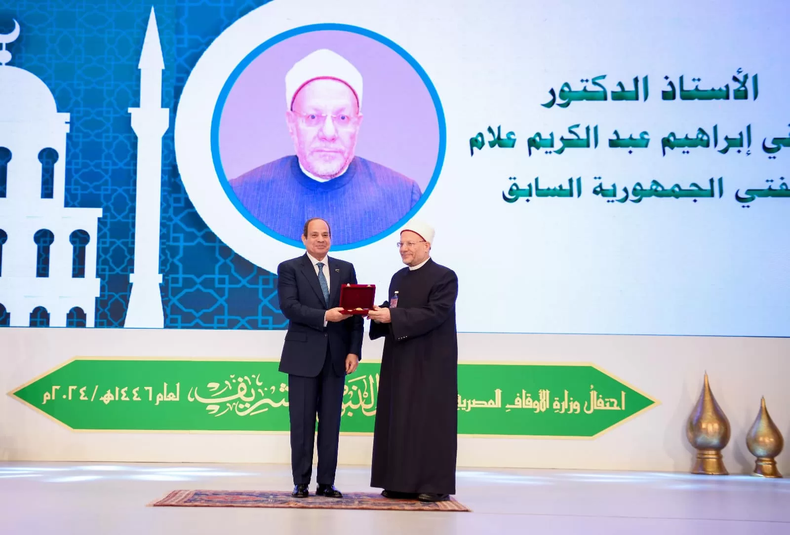 Egypt’s President Abdel Fattah El Sisi has bestowed the “Medal of Science of First Class” on Former Grand Mufti of Egypt Shawki Allam for his efforts in serving religion and homeland and in recognition of his pivotal role in renewing religious discourse, spreading true teachings of Islam and tolerance and moderation values.