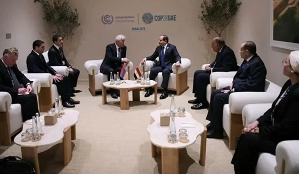 Egypt’s President Abdel Fattah El Sisi held on Saturday a meeting with his Armenian counterpart Vahagn Khachaturyan on the sidelines of the UN climate change conference, COP28 in Dubai.