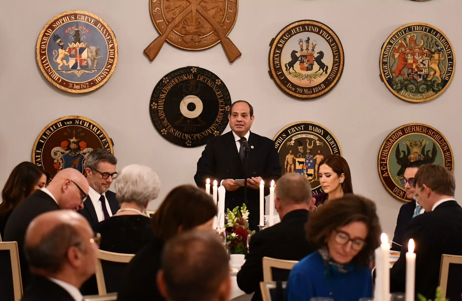 Welcoming his royal guests, Sisi said this banquet is a token of appreciation and gratitude to the Kingdom of Denmark, the King and Queen of Denmark, as well as the Danish prime minister, and parliament speaker, and all officials and friends he had met during his visit to the friendly country, for the warm reception and hospitality.