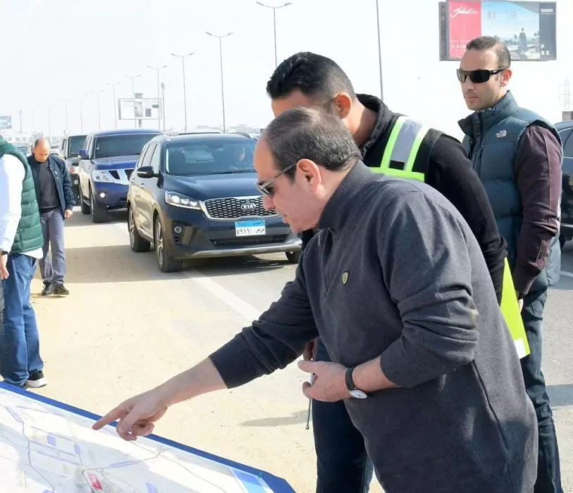 CAIRO- President Abdel Fattah El Sisi on Friday inspected construction works of a number of roads and axes in the New Cairo area.