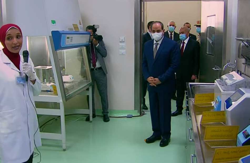 The president listened to a detailed explanation from Chairman of the National Contracting Company Karam Salem on the Scientific Veterinary Centre for Research and Training in Sadat City.