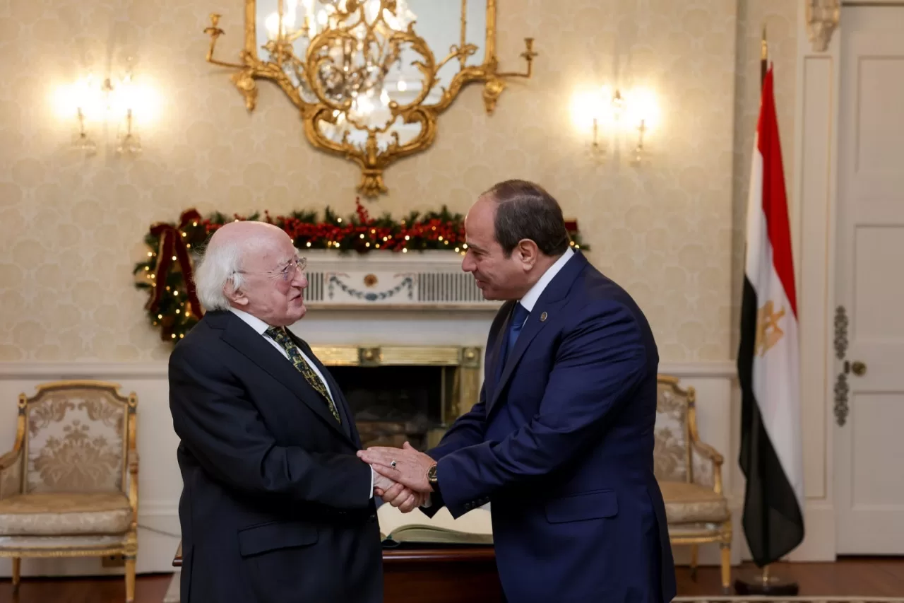 Egypt’s President Abdel Fattah El Sisi met Wednesday with his Irish counterpart Michael Higgins at the presidential palace in Dublin.