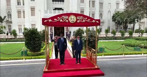 An official reception was held and the national anthems of both countries were played, according to Channel 1 of the Egyptian TV.
