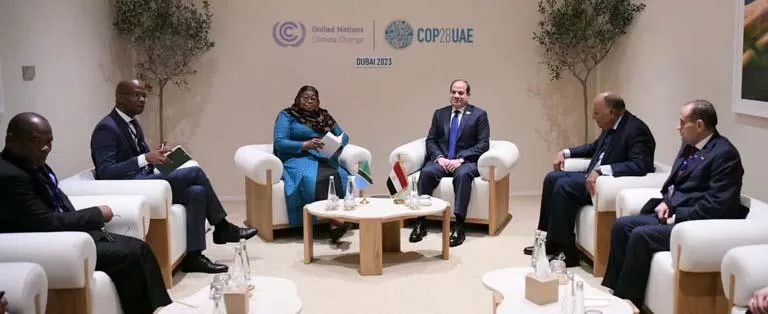 Egypt’s President Abdel Fattah El Sisi met Saturday with Tanzanian President Samia Hassan, on the sidelines of the 28th Session of the Conference of the Parties to the United Nations Framework Convention on Climate Change (UNFCCC) in Dubai.