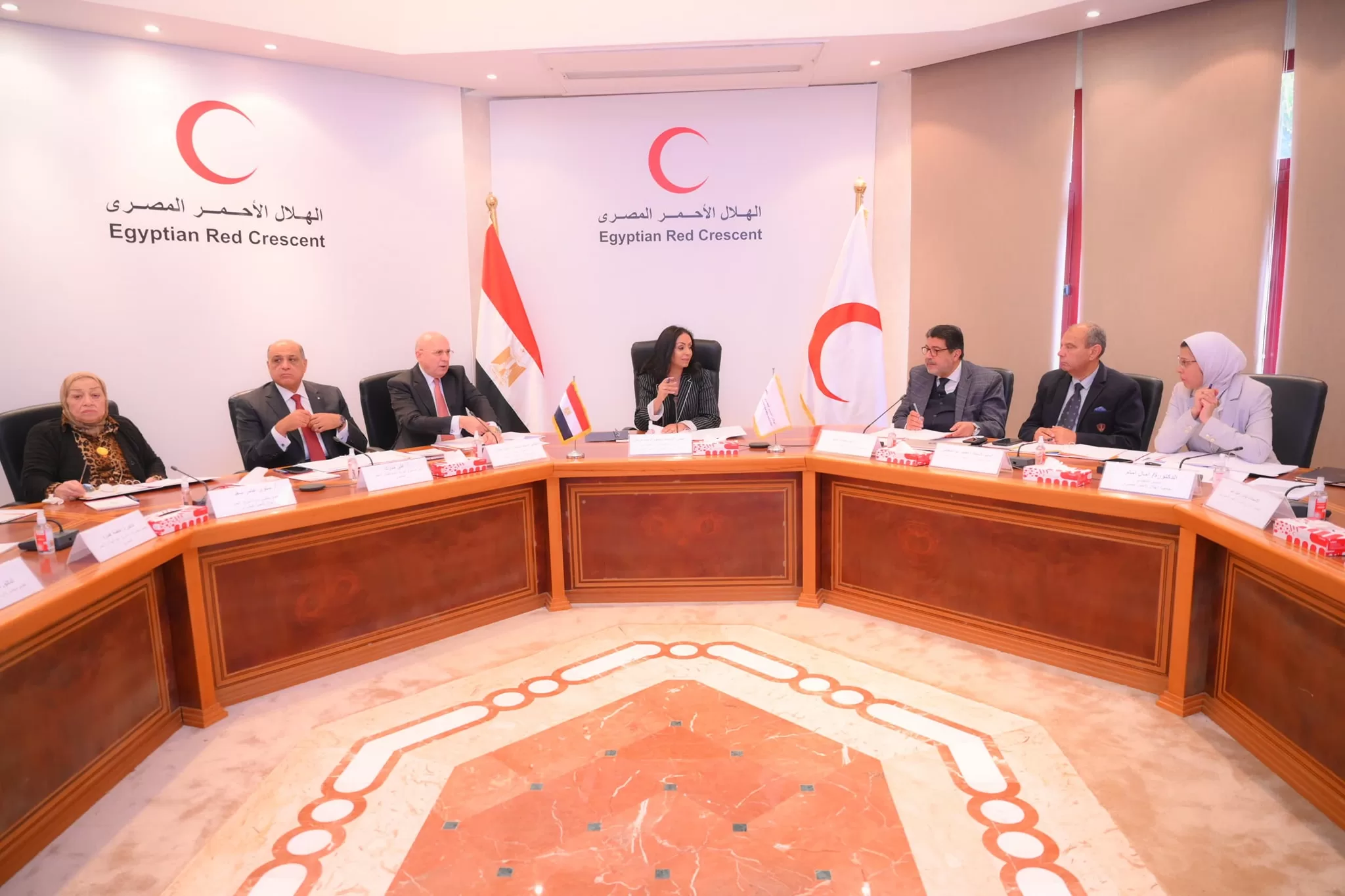 The meeting tackled outcomes of a visit by President of the International Federation of Red Cross and Red Crescent Societies (IFRC) Kate Forbes to Egypt and meetings with state officials and visiting the Egyptian Red Crescent’s general center.