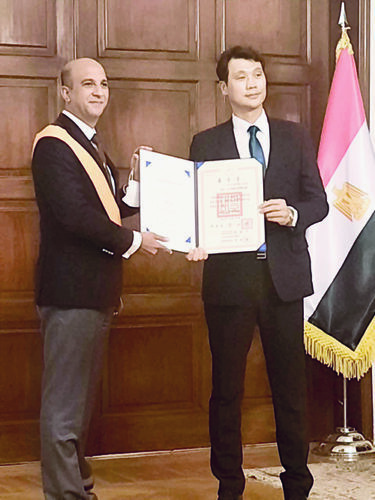 South Korean Ambassador to Cairo Hong Jin-wook has delivered the 1st Class Order of Sports Merit, Fiurst Class, awarded by Korean President Moon Jae-in to the family of the late General Ahmed Fouly in honour of his sporting career and active role in spreading the popularity of taekwondo.