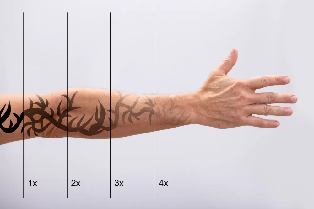 Most people need between 5 and 15 sessions for complete removal, depending on factors like ink depth, color variety, and tattoo age. Sessions are typically spaced 6 to 8 weeks apart to allow your skin to heal and your body to flush out the broken-down ink particles.