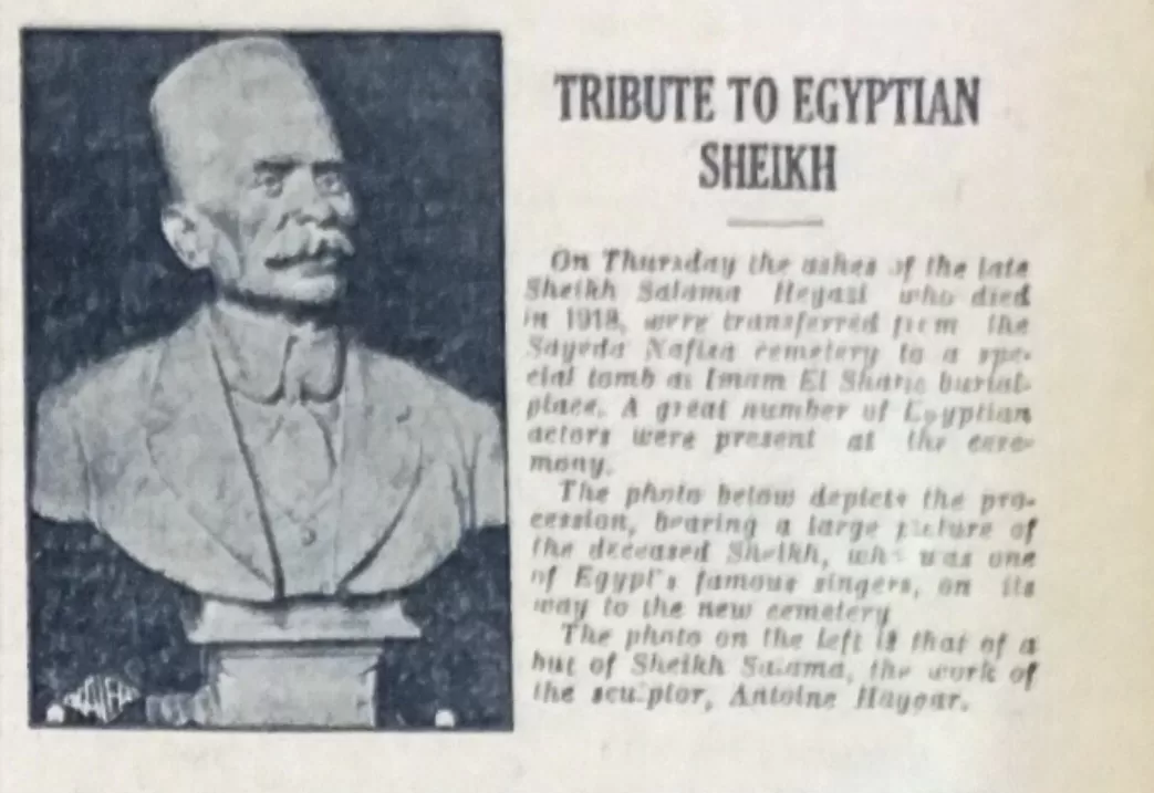 Hegazi, who passed away in 1918, was a pioneer of Arabic musical theatre. The procession was attended by a significant number of Egyptian actors and public figures. To commemorate his legacy, a bust of the late artist, created by the sculptor Antoine Haggar, was unveiled during the proceedings.