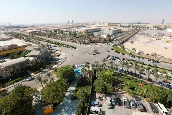 Inside the zone, wide asphalt roads run past rows of modern standard factories, and tall palm and date trees cast cooling shade for people shuttling between office buildings, hotels, residential apartments and recreational facilities. Though an industrial zone, the complete infrastructure and pleasant environment make it feel more like a modern industrial city rising from the sand.