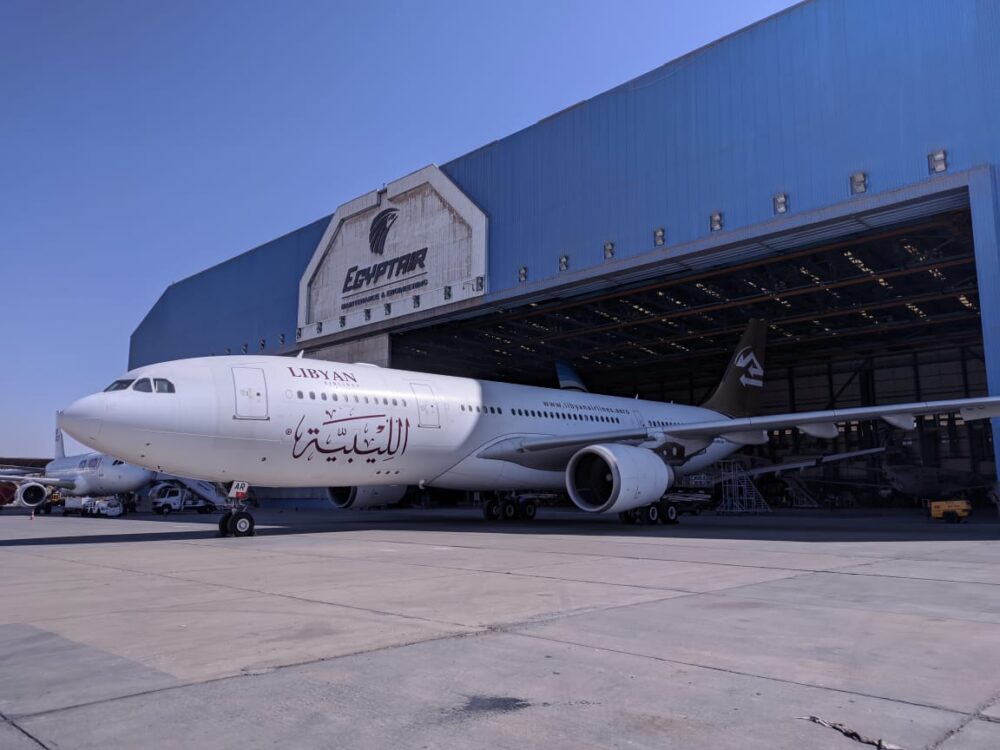 The front lower carriage of the plane was also changed and the plane was completely painted with the Libyan Airlines logo in the hangars of EgyptAir for Maintenance and Engineering.