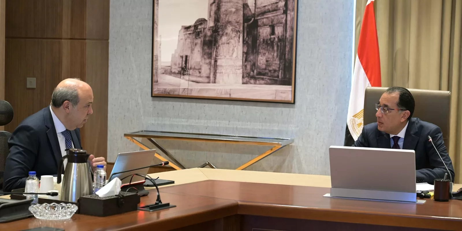 Prime Minister Moustafa Madbouli has held several meetings with Civil Aviation Minister Samih Al-Hifnawi at the New Administrative Capital to oversee progress on the “New Republic Gate” project, Terminal 4 at Cairo International Airport.