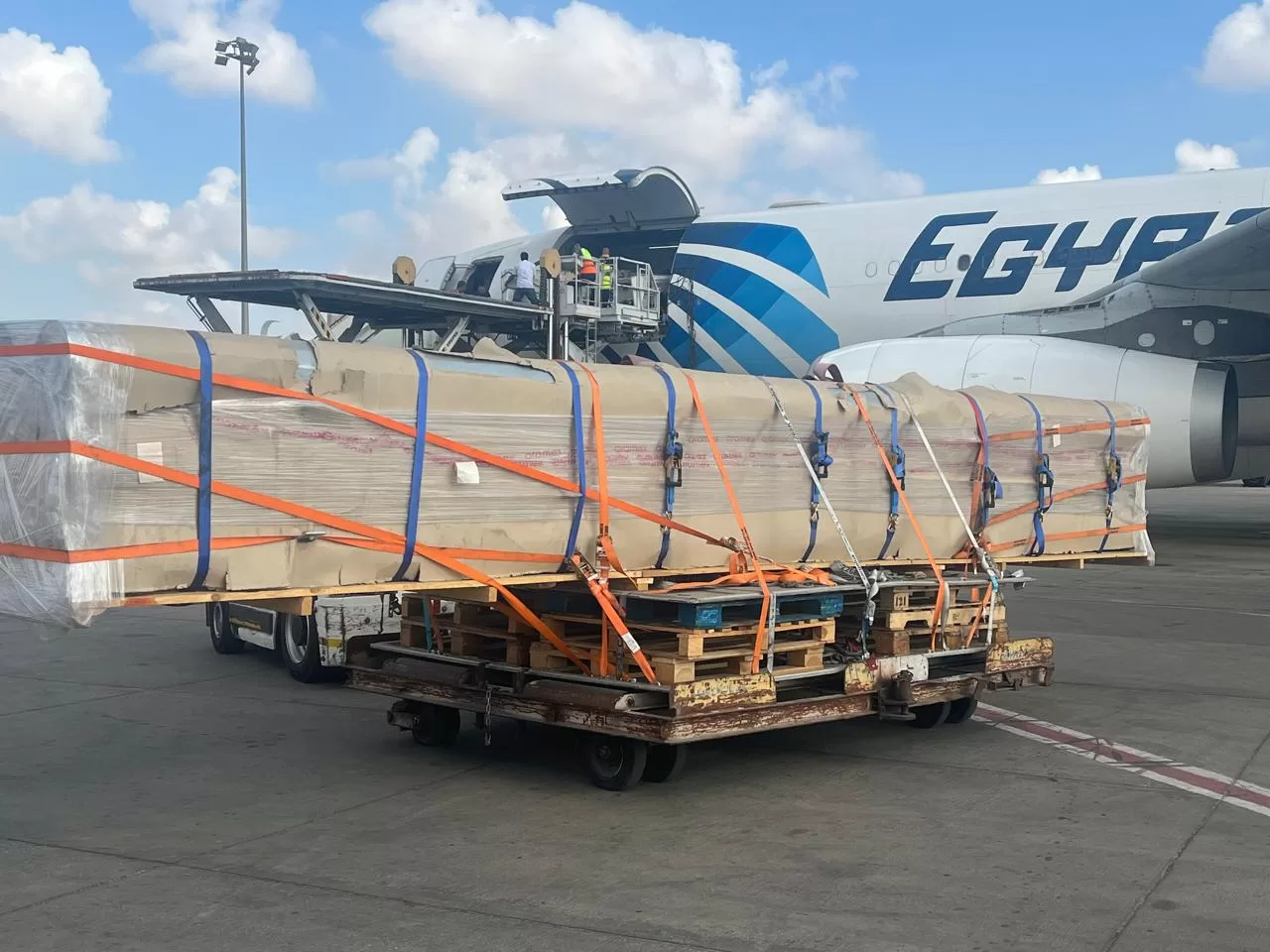 Despite the logistical challenges related to the shipment’s size and weight, the EgyptAir Cargo team managed to professionally coordinate and plan the loading process with utmost precision, enabling the entire shipment to be transported on a single flight.